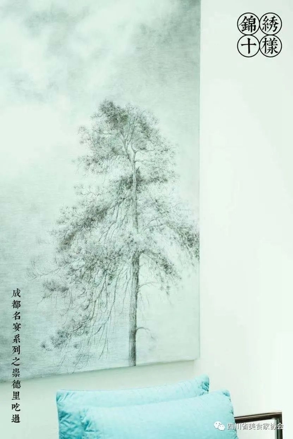 崇德里特邀作家、诗人和美食家石光华担任“锦绣十样”的总顾问,宴席重点呈现川菜独有的10大味道,以清鲜味为底,10味贯穿始终,体现川菜“清鲜为底,麻辣见长,重在味变”和“百菜百味,一菜一格,擅长麻辣”的味道艺术。同时借鉴西式宴席的结构,用位份的方式,形成“前菜,头菜,汤品,主菜,小吃,甜品”的品食节奏,再加上百年老宅的用餐场景以及蜀锦、中国画、素描等视觉元素的穿插,最终连续两场“锦绣十样”宴会以将川菜文化与成都文化的有机融合,以唤起亲朋谊、故里情的的亲切、温暖、轻松收获了嘉宾的诸多赞许和祝愿。